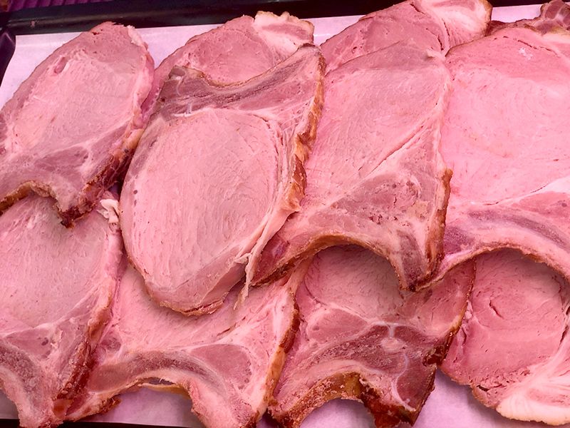 En cerdo encontrás ibérico con sus cortes (presa ibérica, secreto ibérico, solomillos etc.). Asi como cerdo de "Capa Blanca" de la raza Duroc, con todos sus cortes.