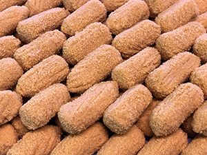 Hamburguesas con diferentes sabores, salchichas, empanados listos para freir, así como finger, san jacobos, cachopos, flamenquines, croquetas con diferentes sabores.